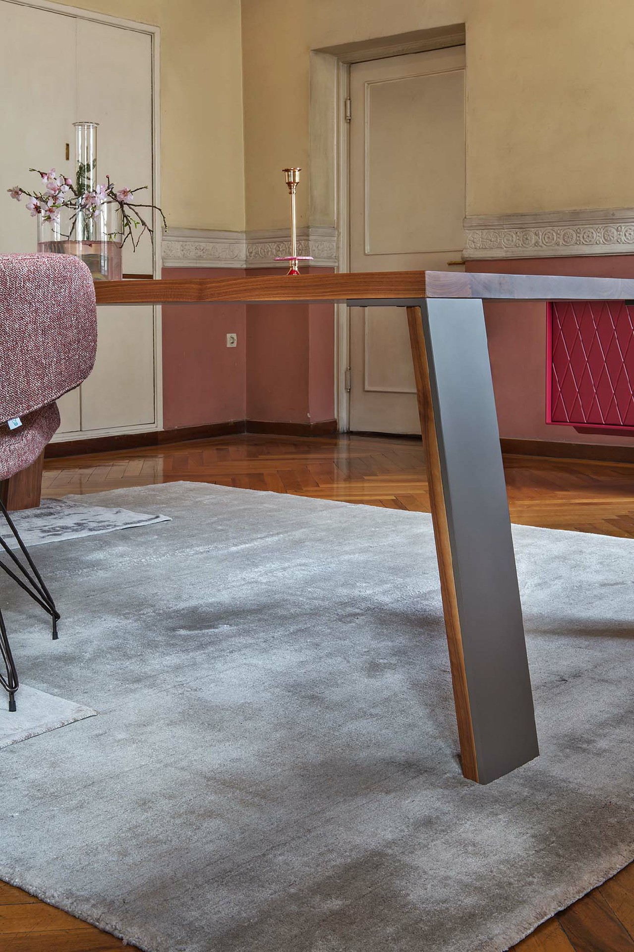 Τραπέζι σε ξύλο δρύς με μεταλλική λεπτομέρεια στην βάση