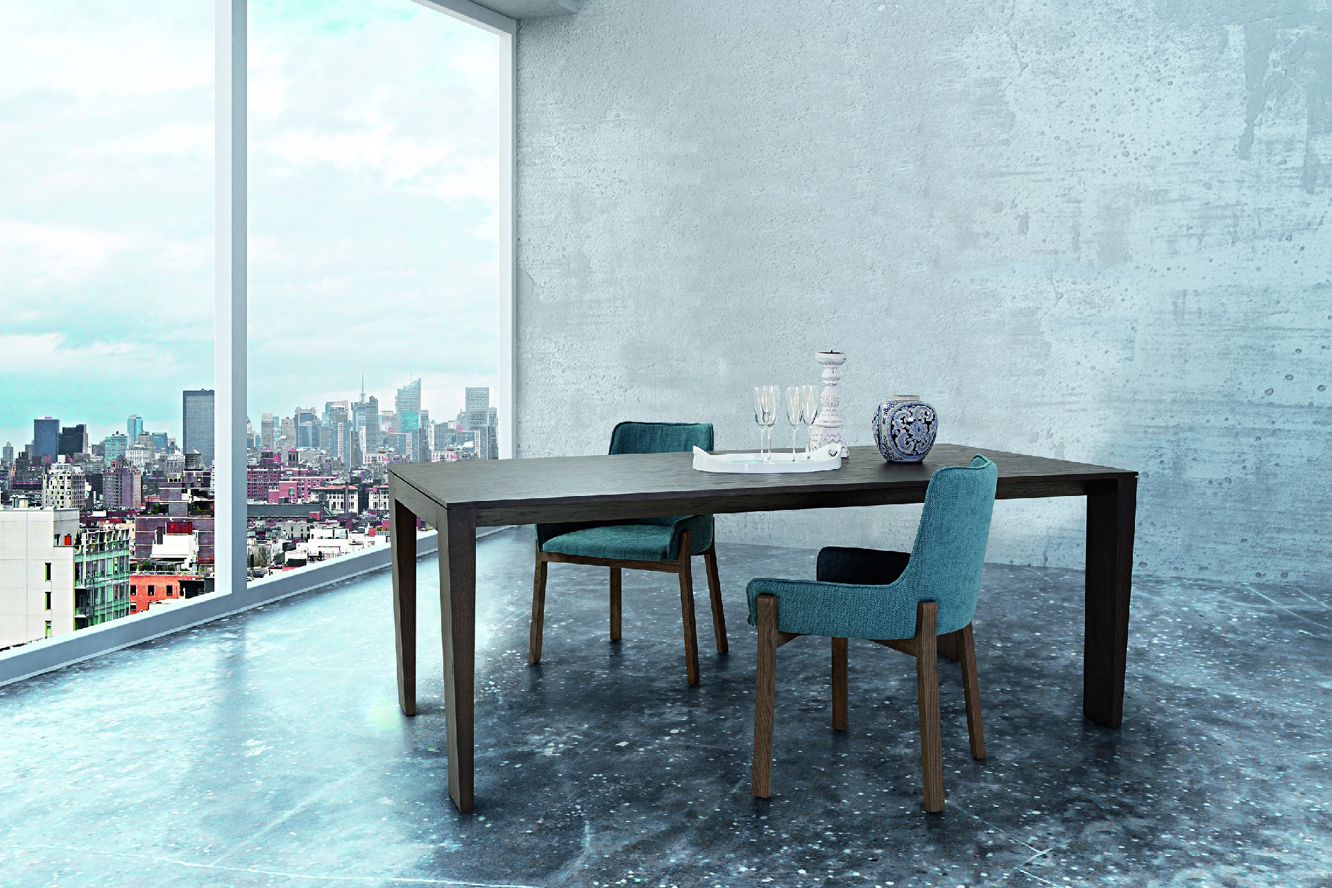 Τραπέζι με παραλληλόγραμμο καπάκι και προέκταση σε συρτάρι σε ξύλο δρύς