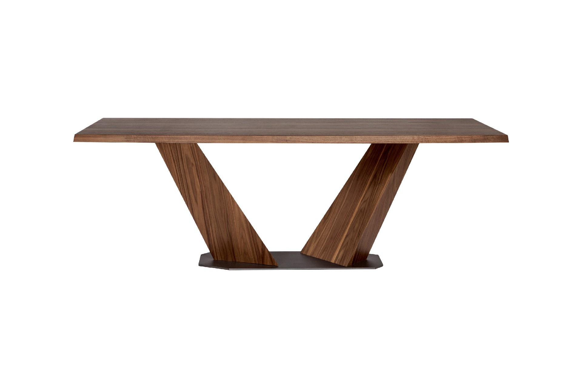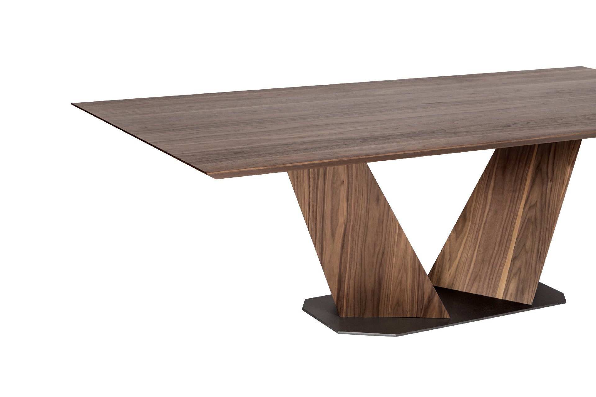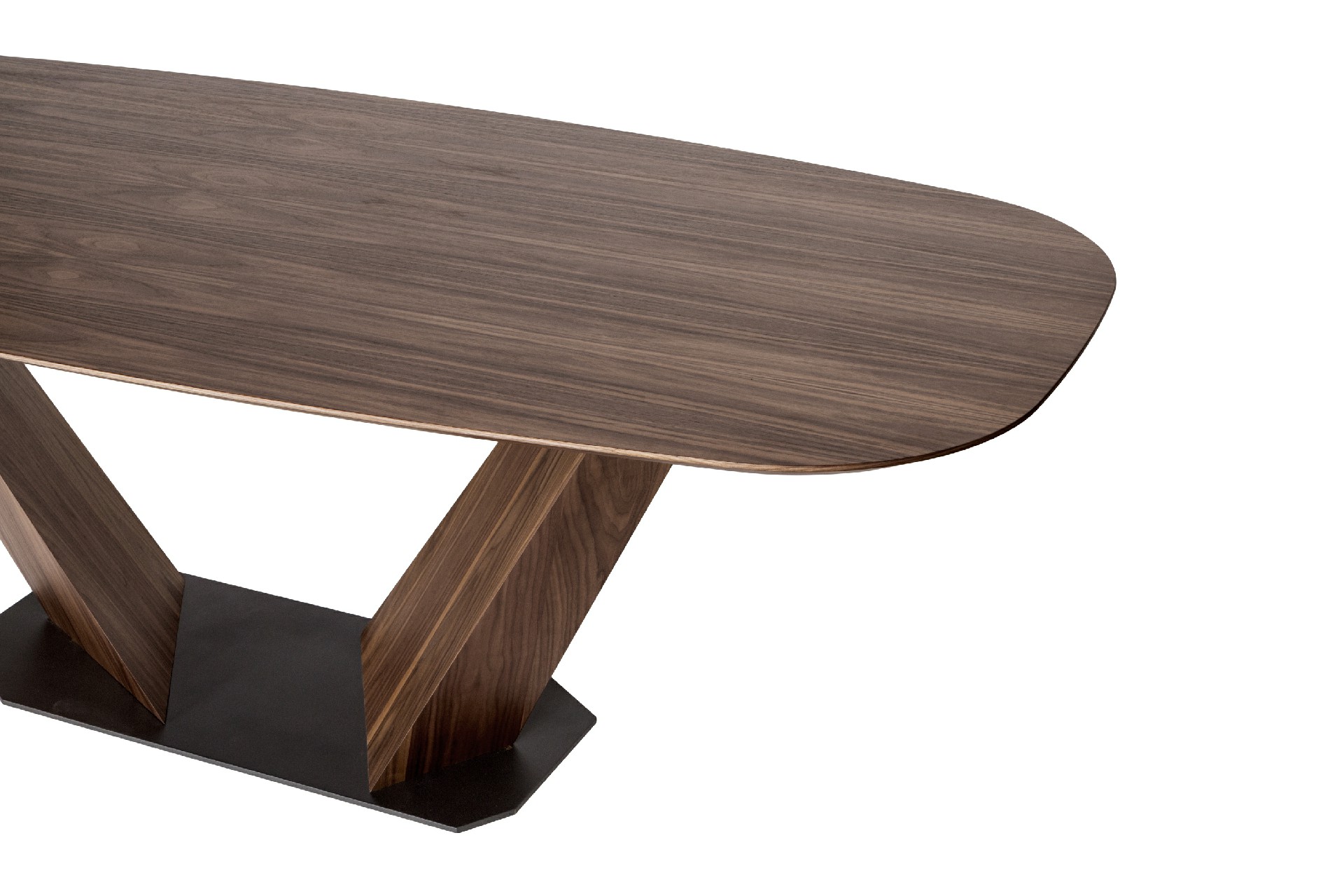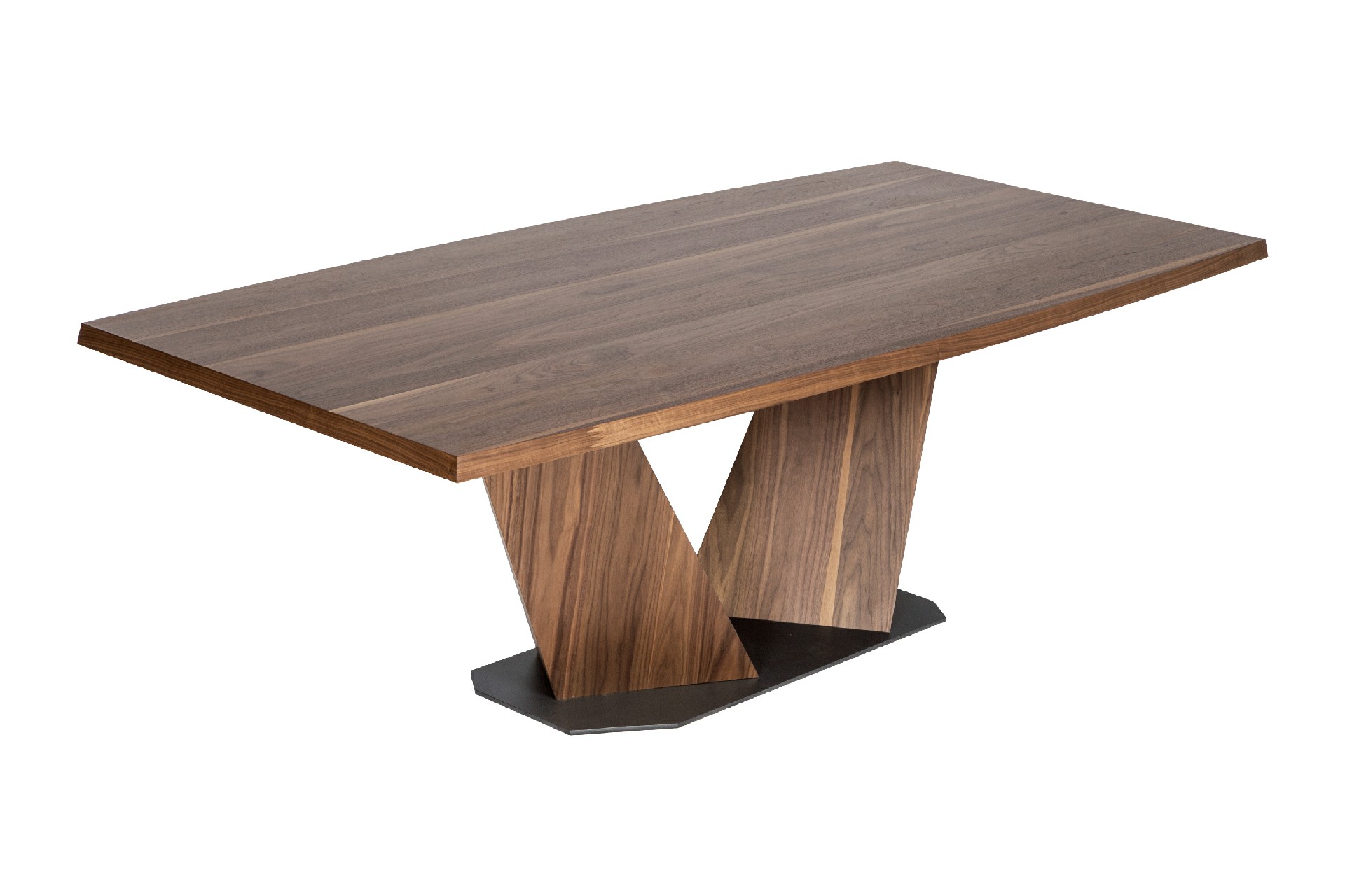 Τραπέζι με καμπύλο παραλληλόγραμμο καπάκι με φάλτσο 10 μοίρες και βάση σε ξύλο ακανόνιστης καρυδίας