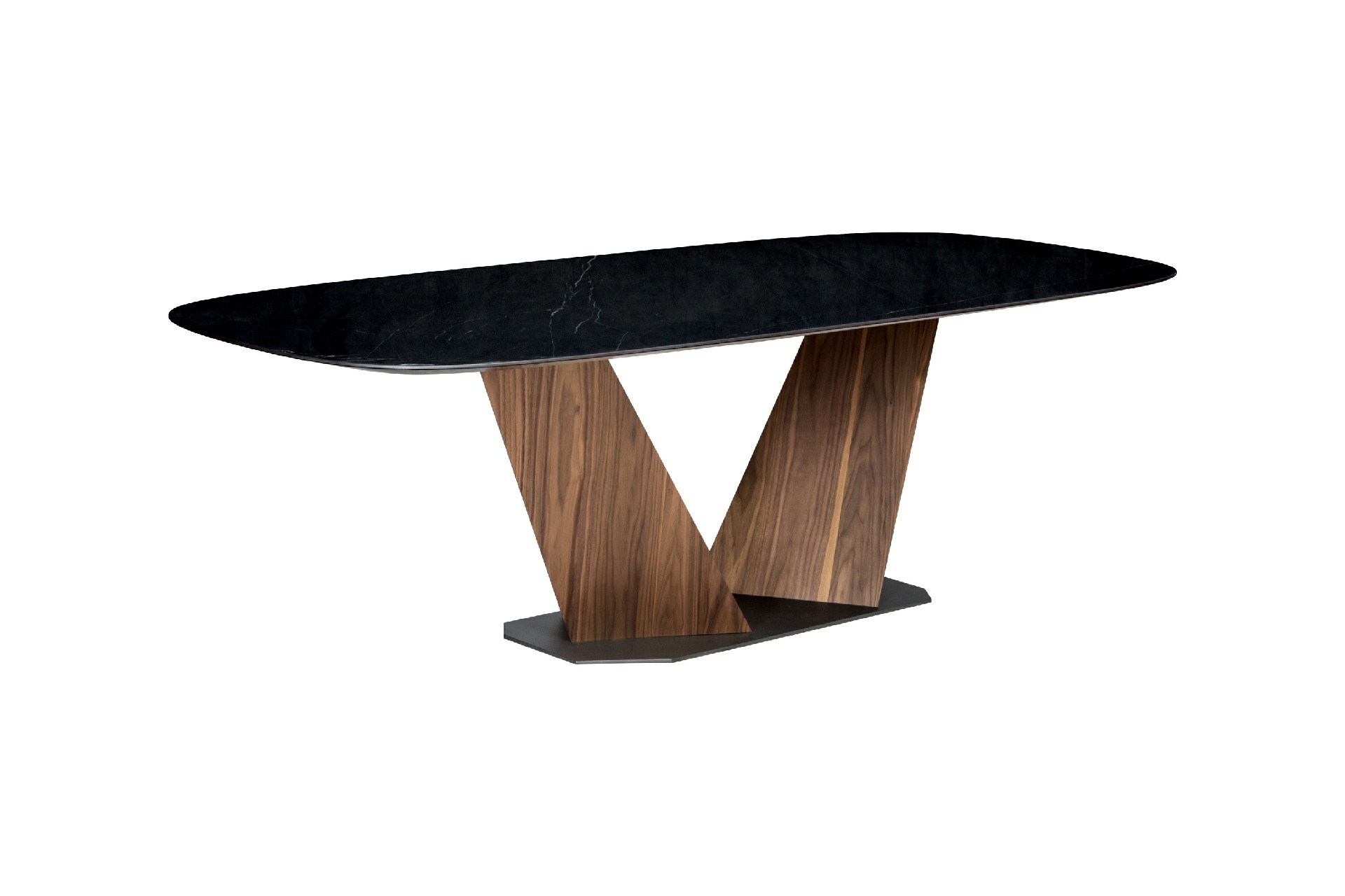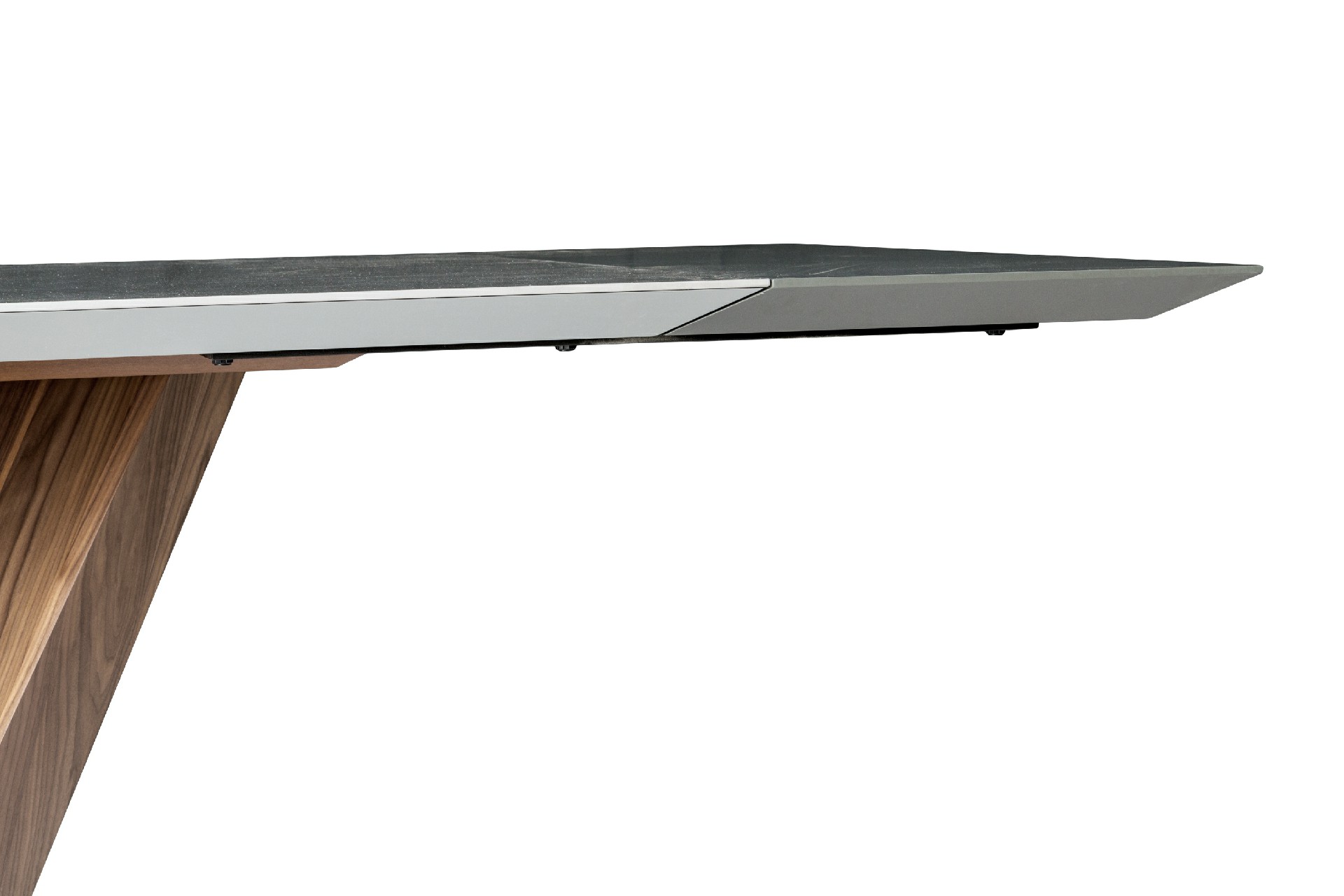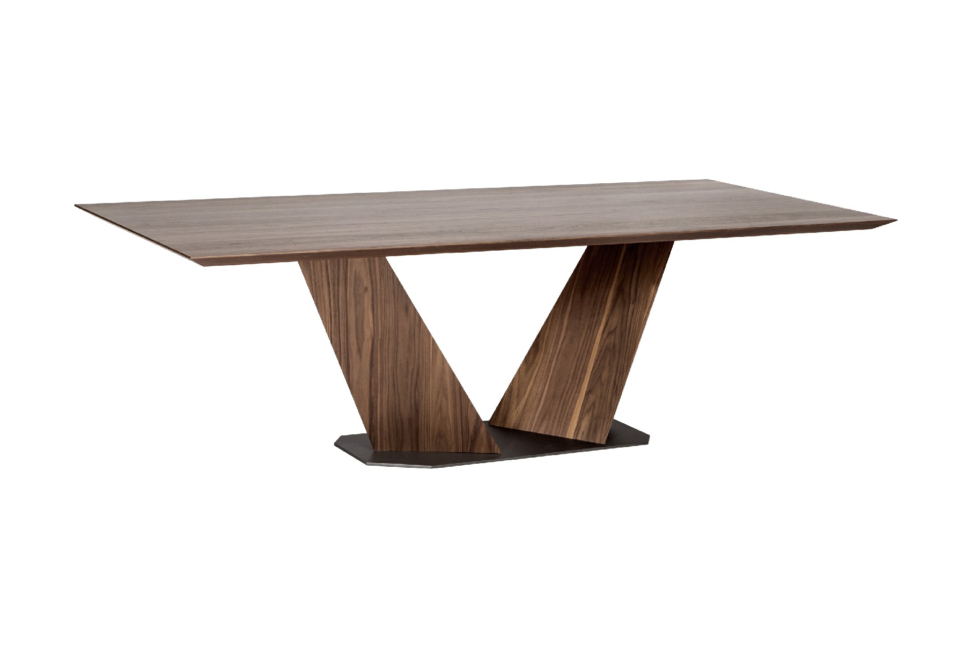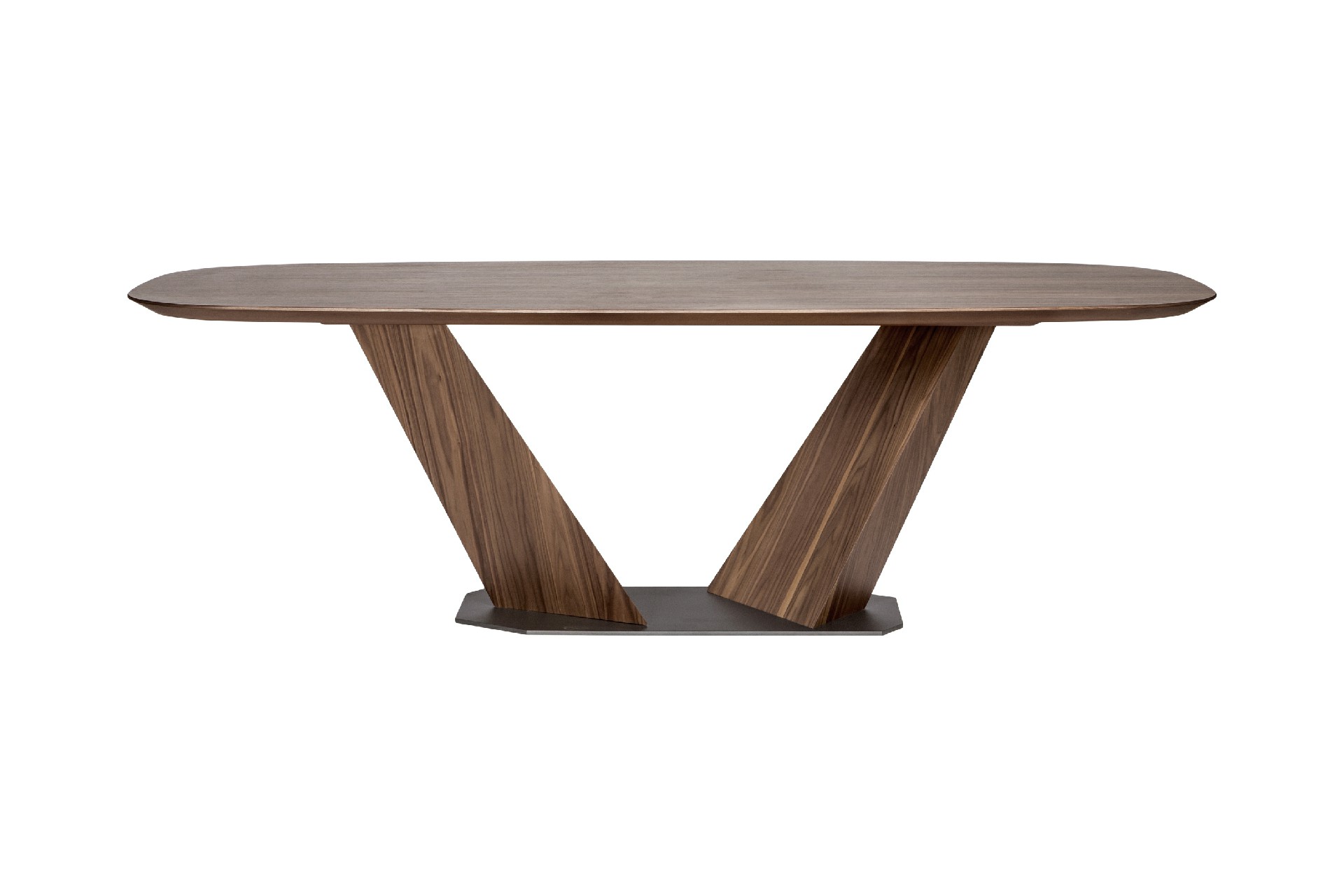 Τραπέζι με καμπύλο παραλληλόγραμμο καπάκι με φάλτσο 10 μοίρες και βάση σε ξύλο ακανόνιστης καρυδίας