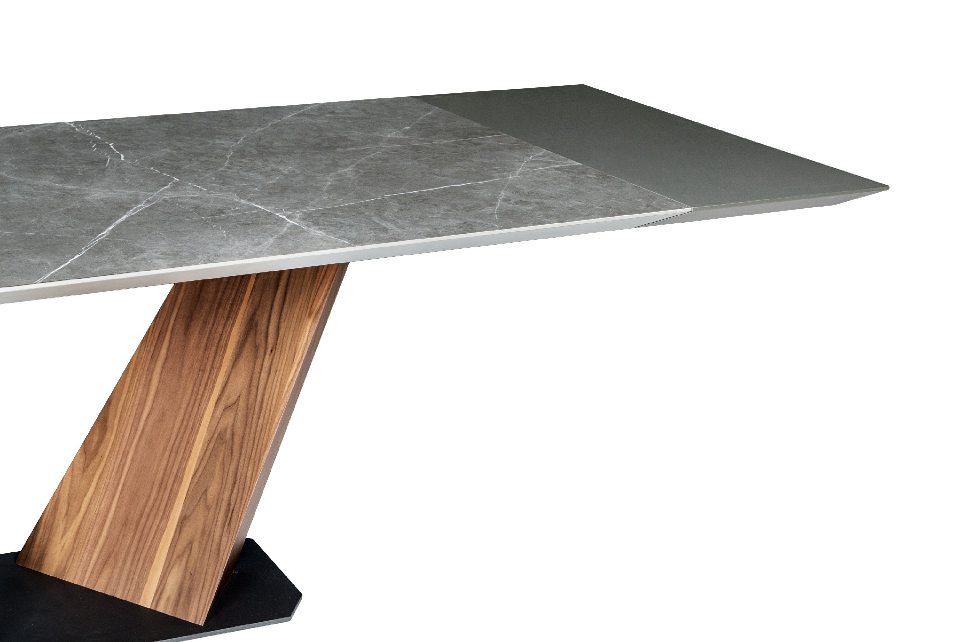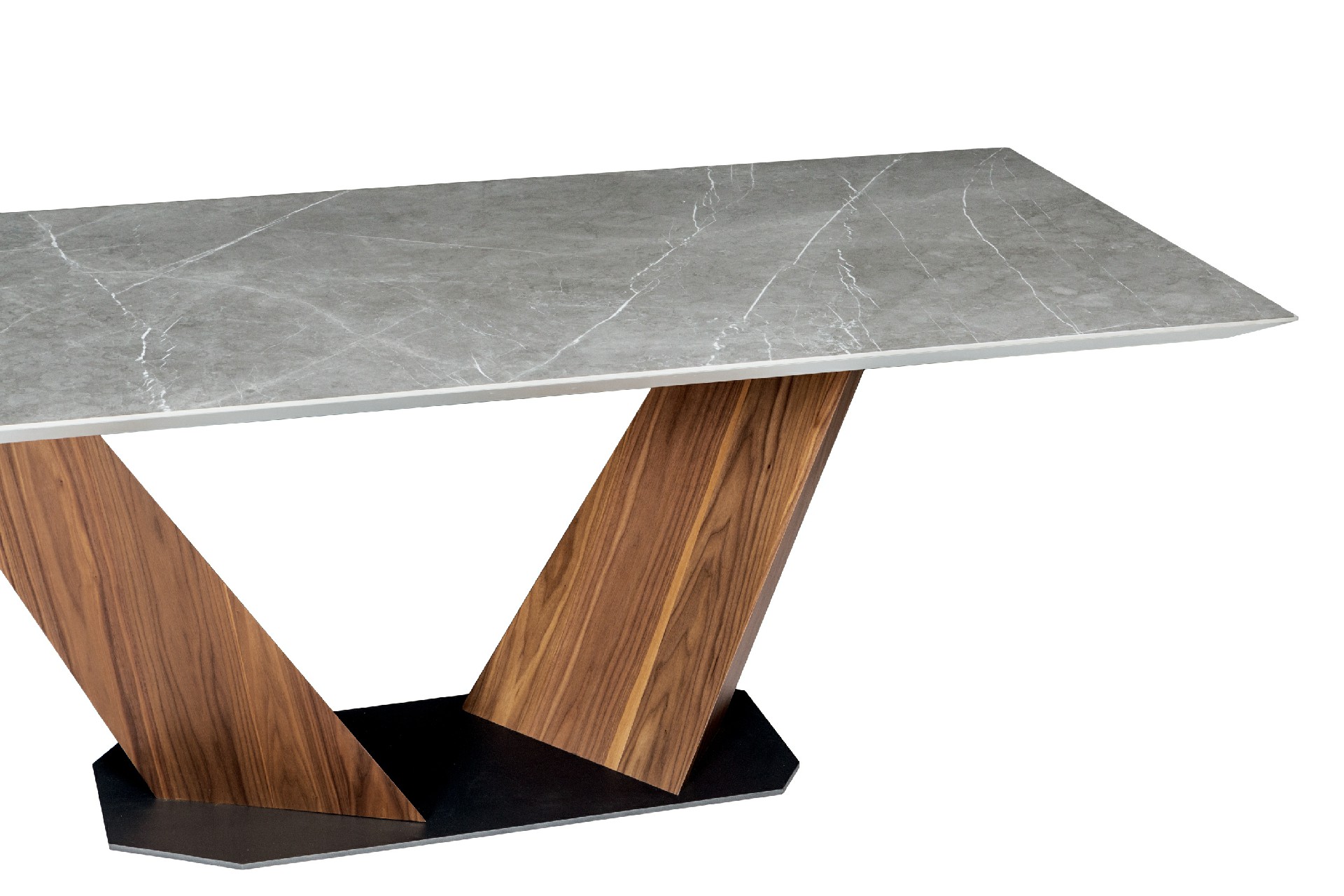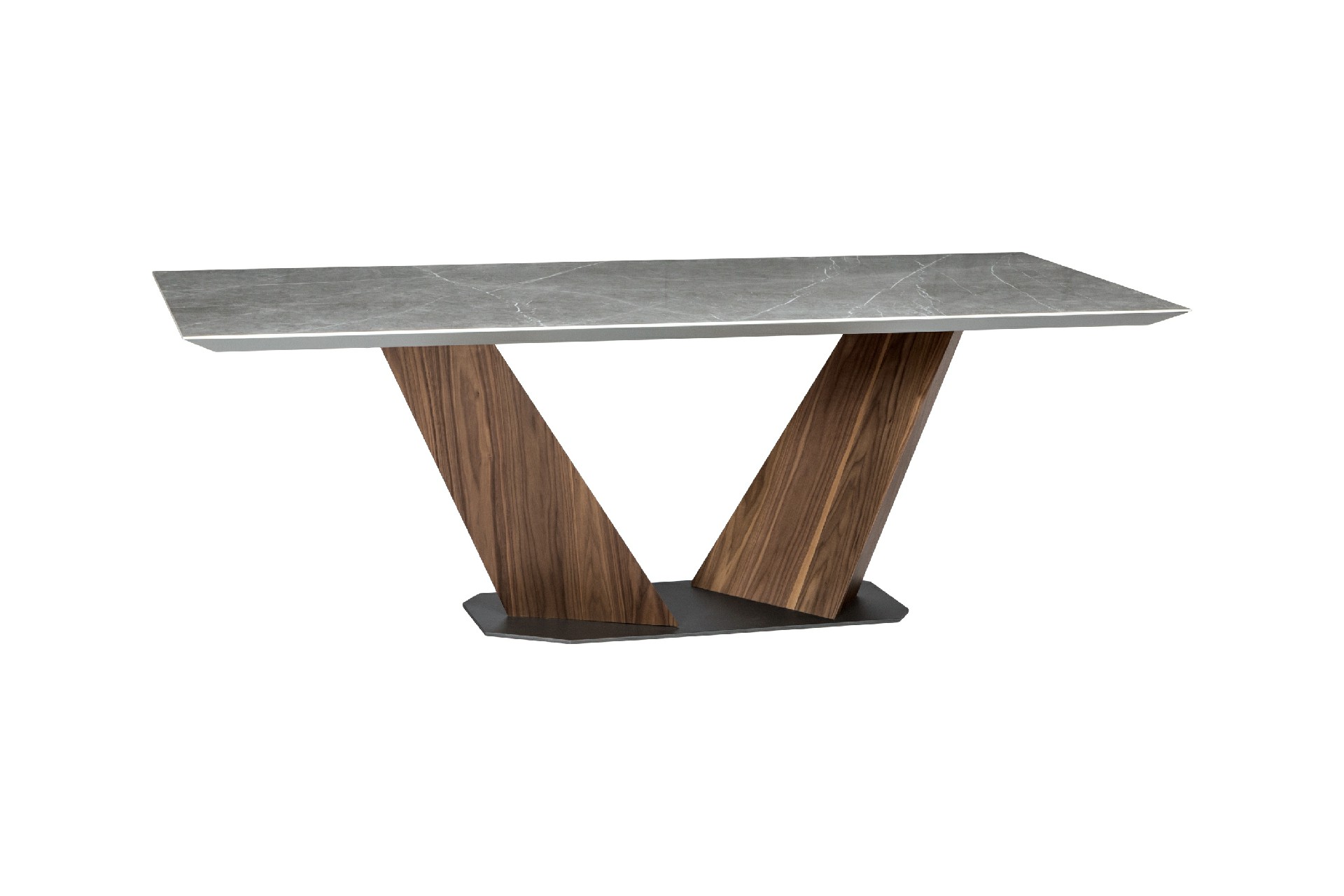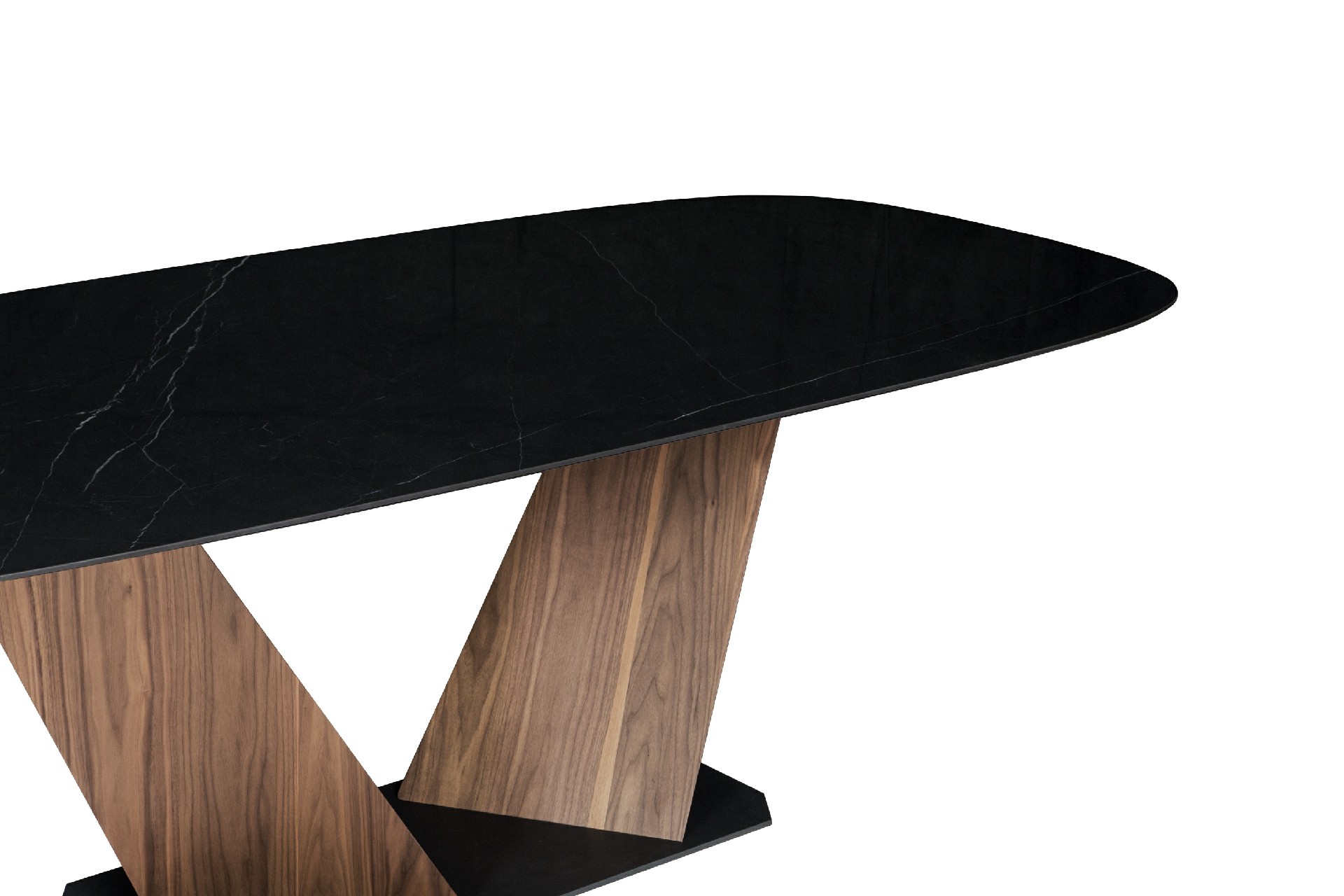 Τραπέζι με καμπύλο παραλληλόγραμμο καπάκι με φάλτσο 10 μοίρες και βάση σε ξύλο ακανόνιστης καρυδίας