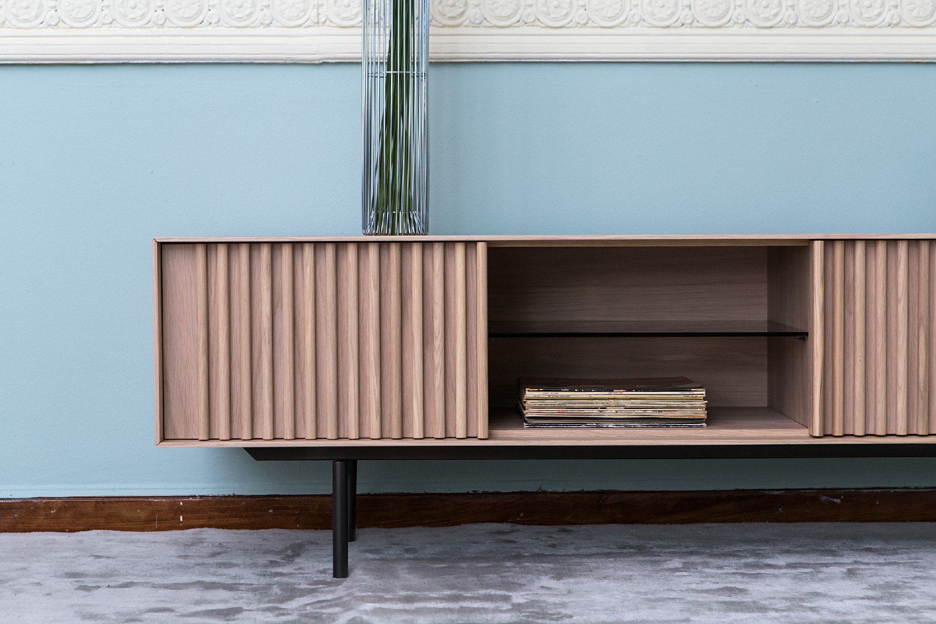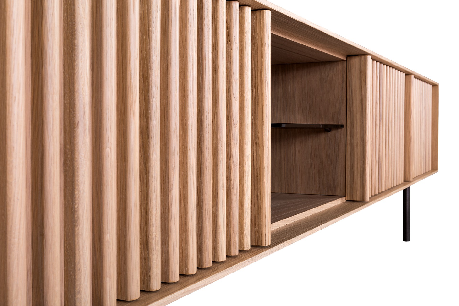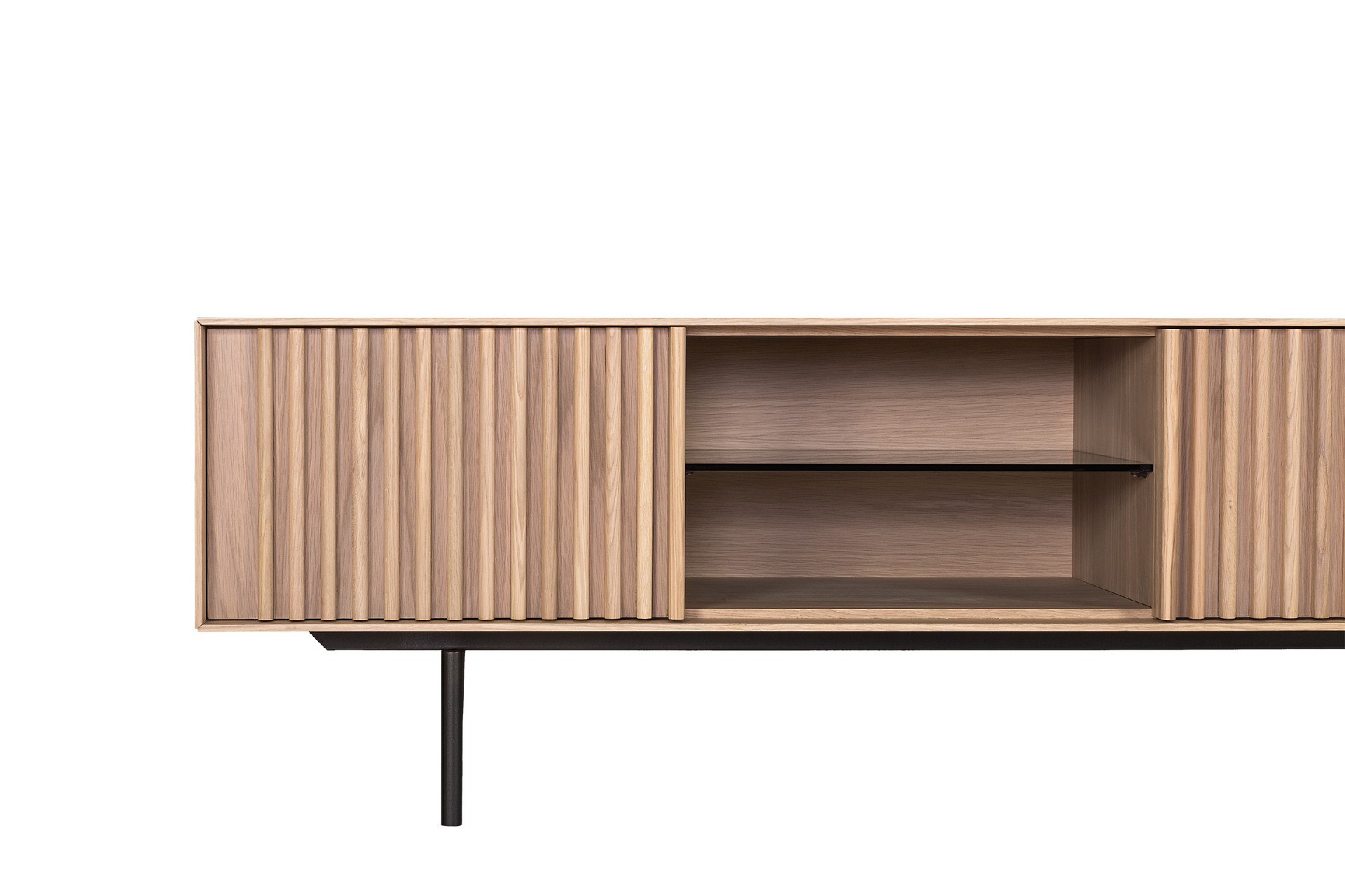Έπιπλο tv σε λάκα 3 πόρτες με push-pull και ανοιχτό χώρο με εσωτερικό ράφι