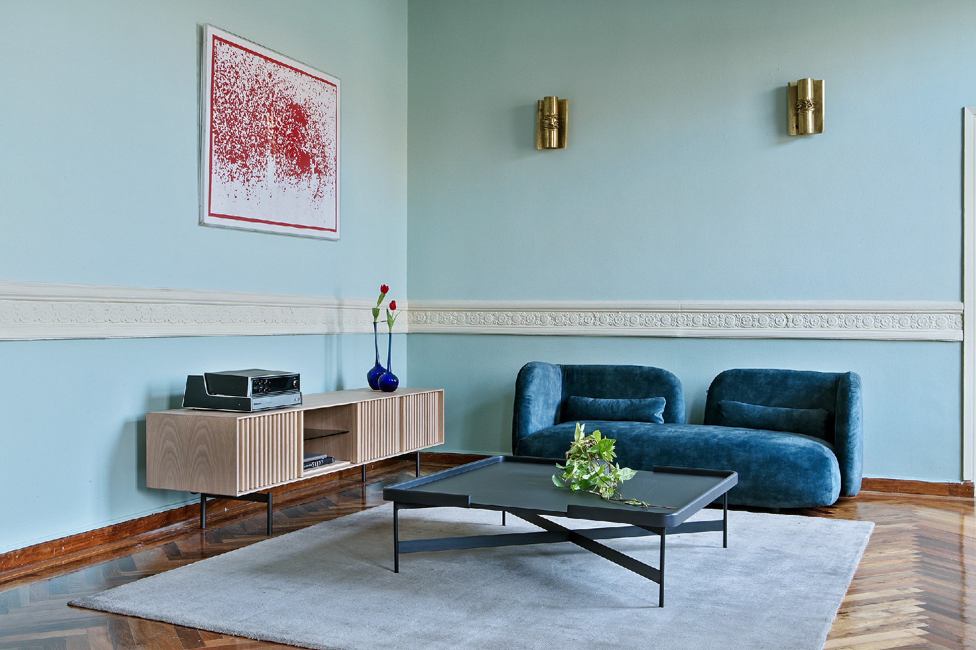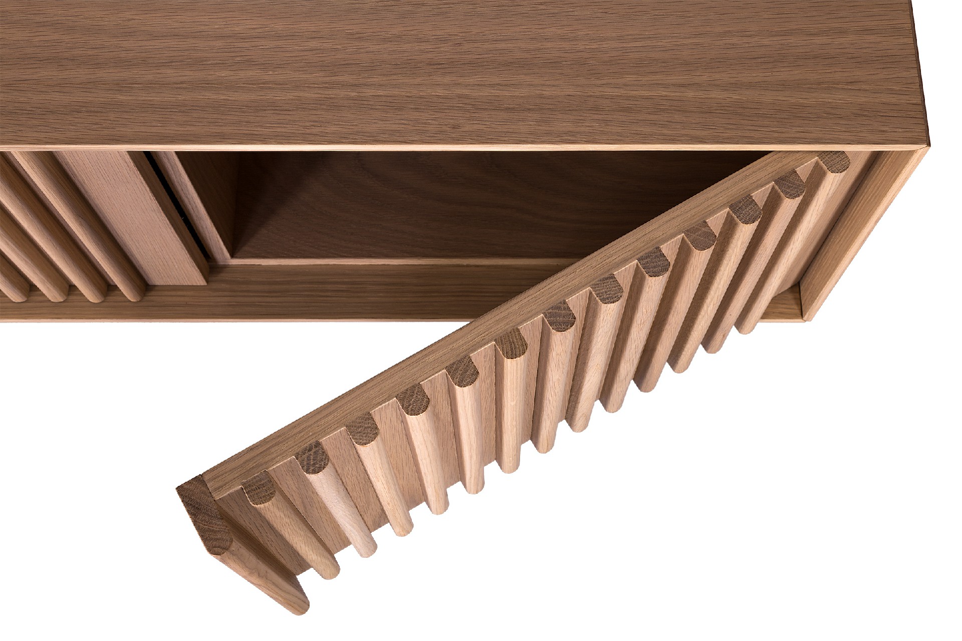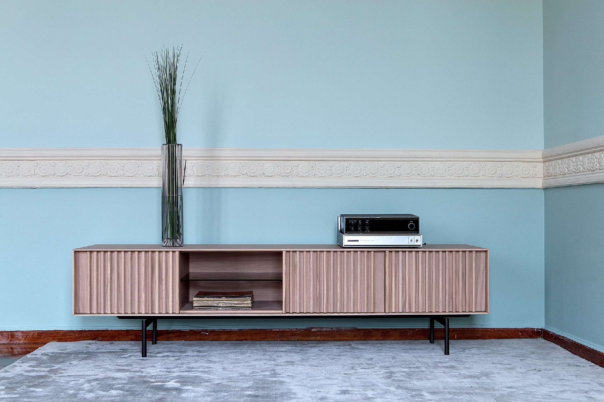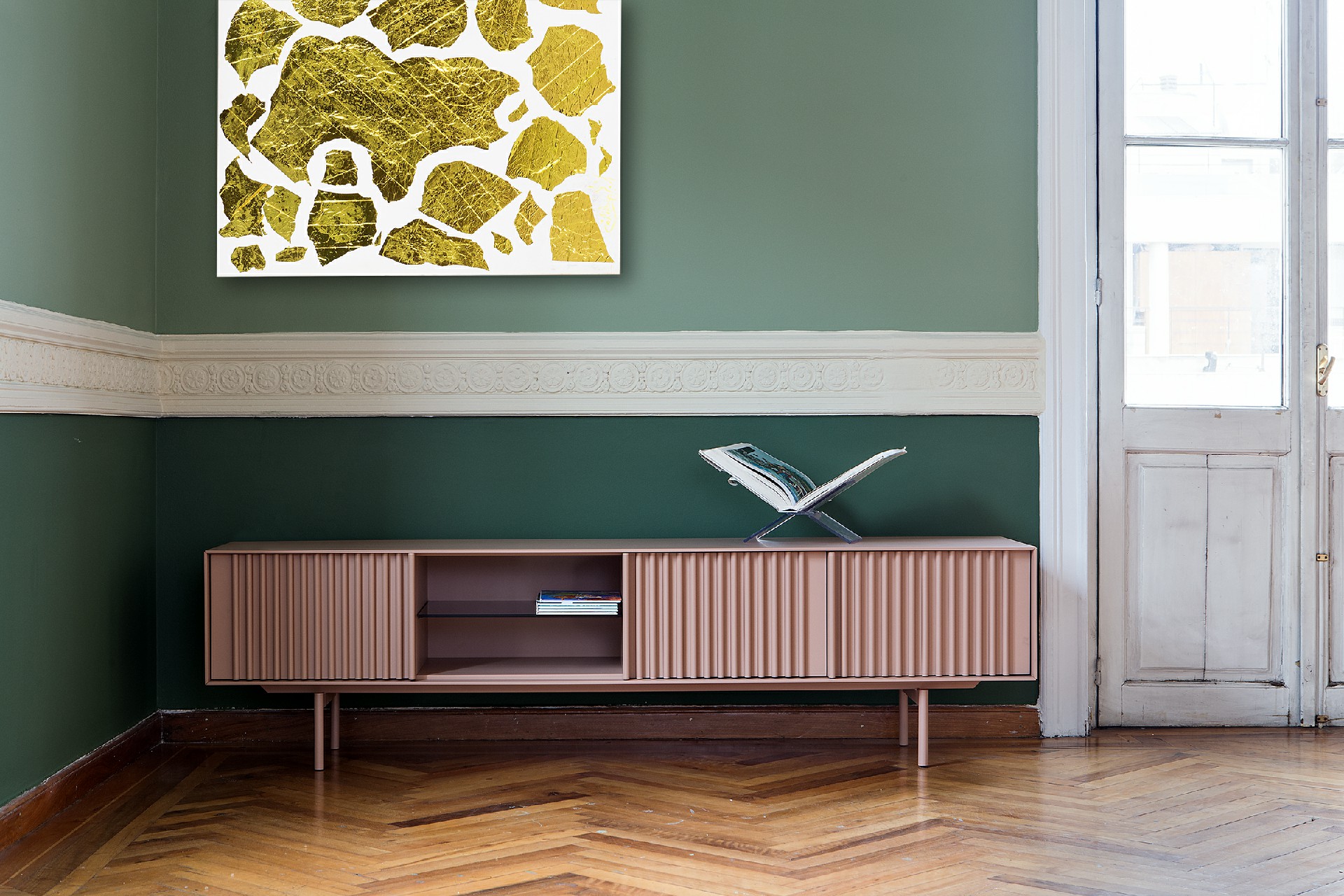 Έπιπλο tv σε λάκα 3 πόρτες με push-pull και ανοιχτό χώρο με εσωτερικό ράφι