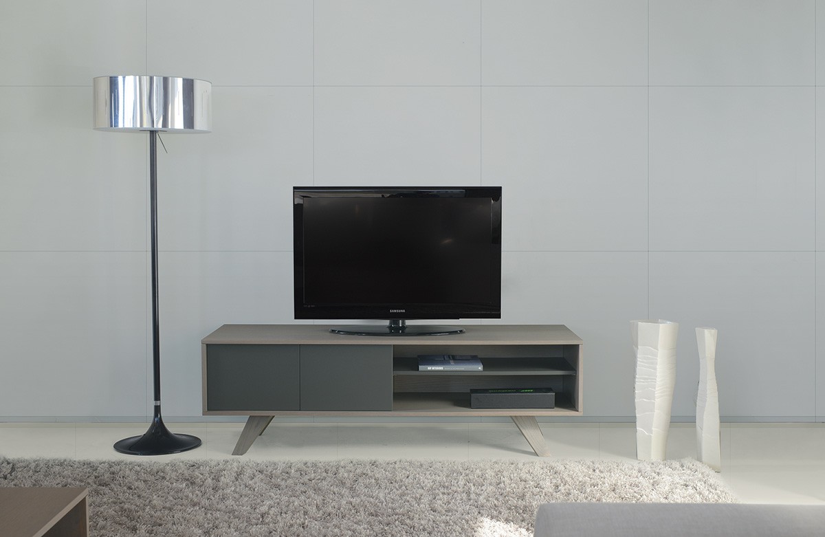 Έπιπλο tv σε ξύλο δρύς με λάκα 2 πόρτες με push-pull και ανοιχτό χώρο με εσωτερικό ράφι