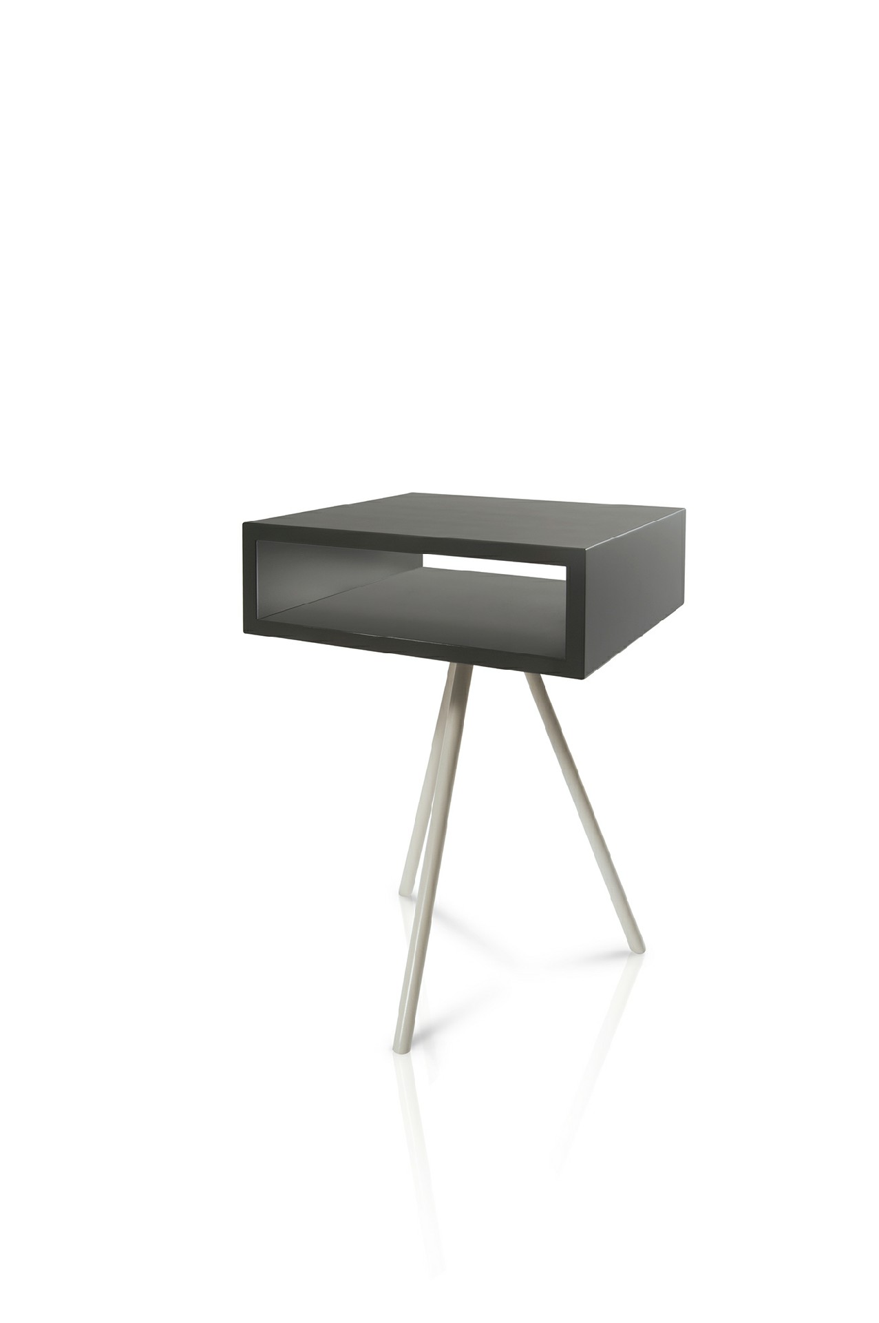 Τραπεζάκι σαλονιόυ με μεταλλική βαση και καπάκι σε λάκα